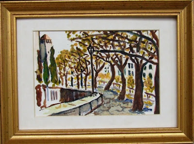 Since I am busy with a rather large format oil painting of the yacht club in the Scheveningen harbor , which I hope to post tomorrow or Thursday. I have decided to mail out this posting of this charming autumn scene from Verona, Italy. Here you have a watercolor version of an orginal oil painting I made on location, when I was attending the Accademy of Fine Arts in Verona.